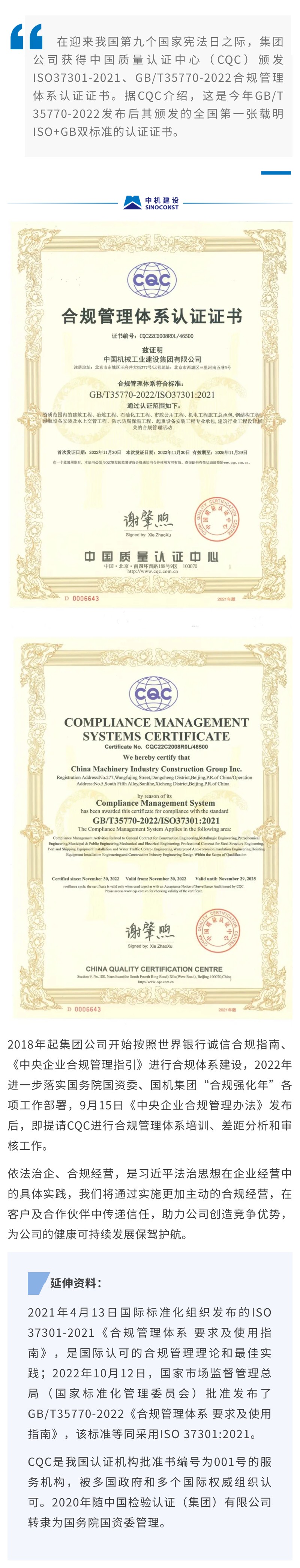 集團(tuán)公司獲頒合規(guī)管理體系認(rèn)證證書(shū)